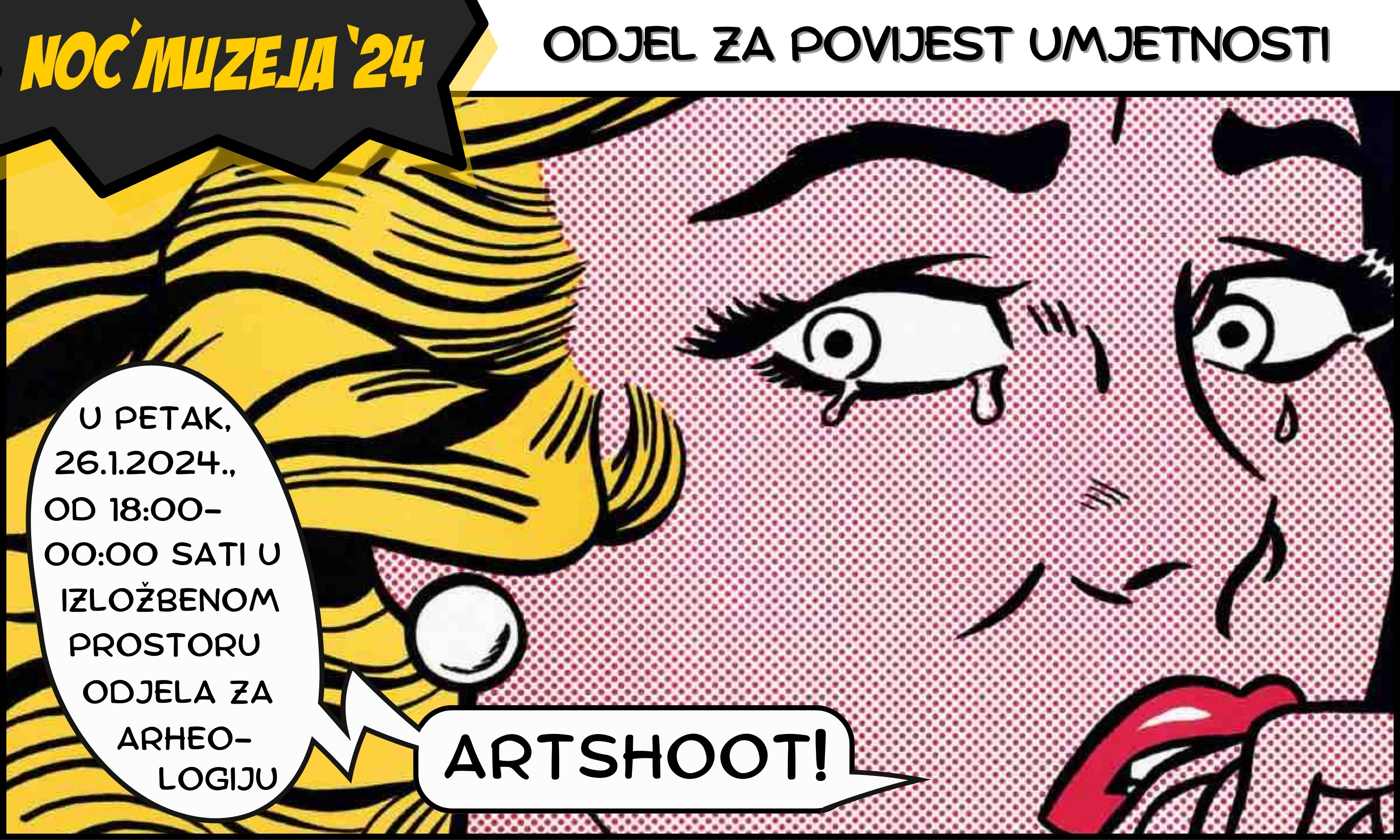 U organizaciji Odjela za povijest umjetnosti, u sklopu Noći muzeja bit će postavljen Artshoot - kostimirani fotokutak. Zainteresirani posjetitelji imati će priliku biti obučeni u kostim i fotografirani unutar okvira s kulisom poznatog likovnog djela. Fotografije će kasnije moći preuzeti putem online galerije, skupa s dodatnim informacijama i zanimljivostima o likovnom djelu u koje su se prerušili.