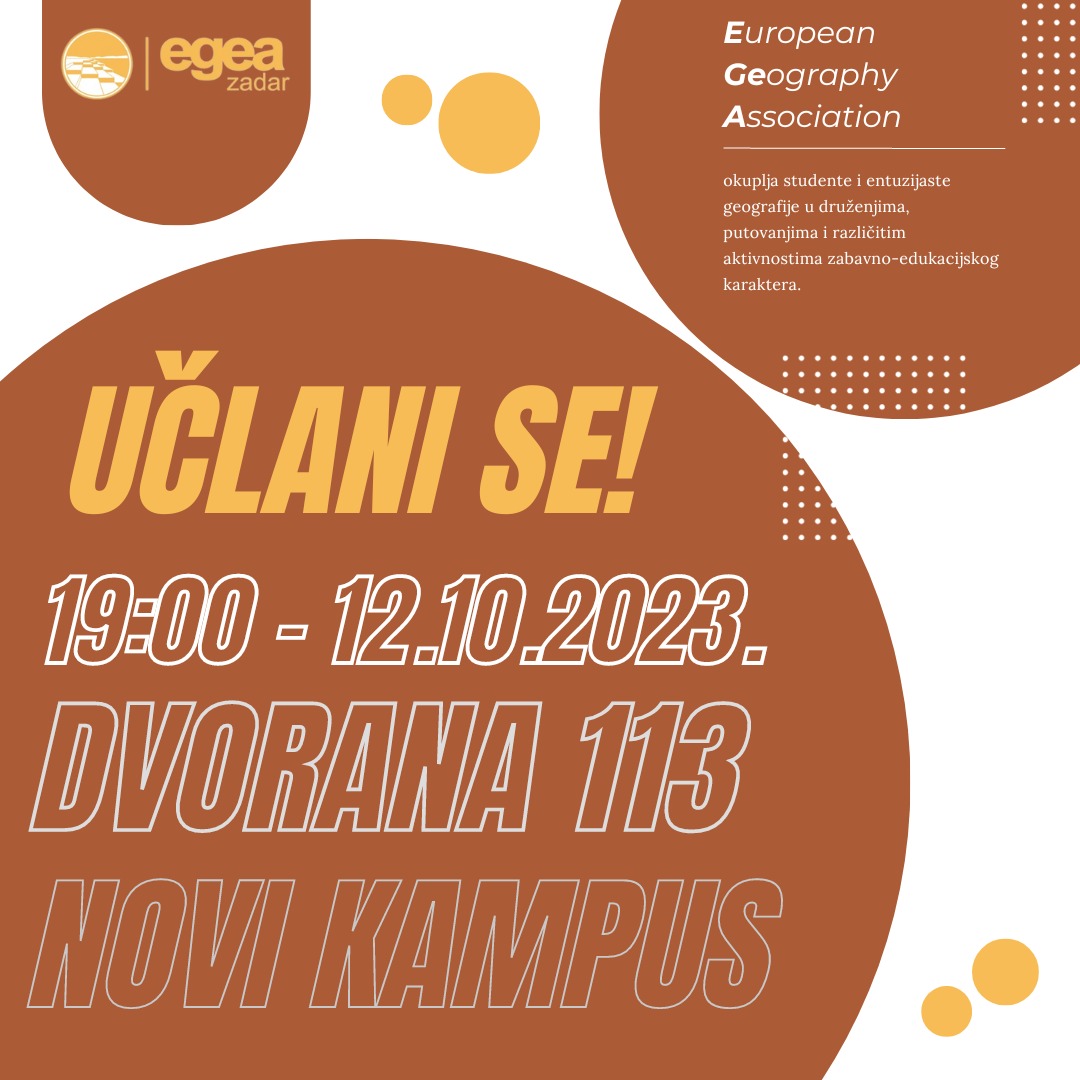 Članovi udruge imaju priliku putovati i posjetiti svoje kolege u drugim podružnicama EGEA-e Europe. Tijekom godine, članovi udruge mogu sudjelovati na pet kongresa te se tako profesionalno usavršiti i proširiti svoja znanja. Cilj udruge je promicanje i promocija geografije među studentima, ali i širom populacijom kako bi istražili široki skup mogućnosti koje geografija pruža. Tradicionalno, tijekom ljetnog semestra, članovi udruge organiziraju Dane geografije, znanstveno-popularni skup s profesorima, predavačima, putopiscima i stručnjacima raznih disciplina.